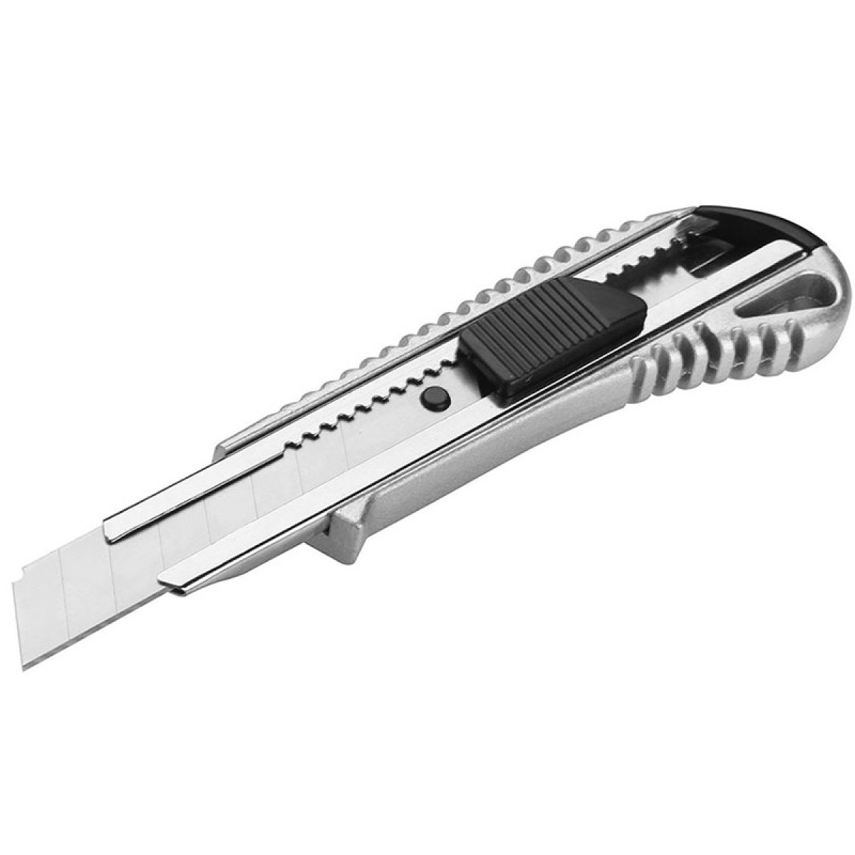 Ніж сегментний алюмінієвый з шириною леза 18 мм призначений для різання плівки, скотча, монтажної піни, ковроліну, гіпсокартону. Ріжучий інструмент широко застосовується при проведенні будівельних і монтажних робіт. Корпус ножа виготовлений з алюмінієвого сплаву. Завдяки високій удароміцності матеріалу виріб характеризується довгим терміном служби. Конструкція включає металеву направляючу, плоску кнопку руху і фіксації леза.